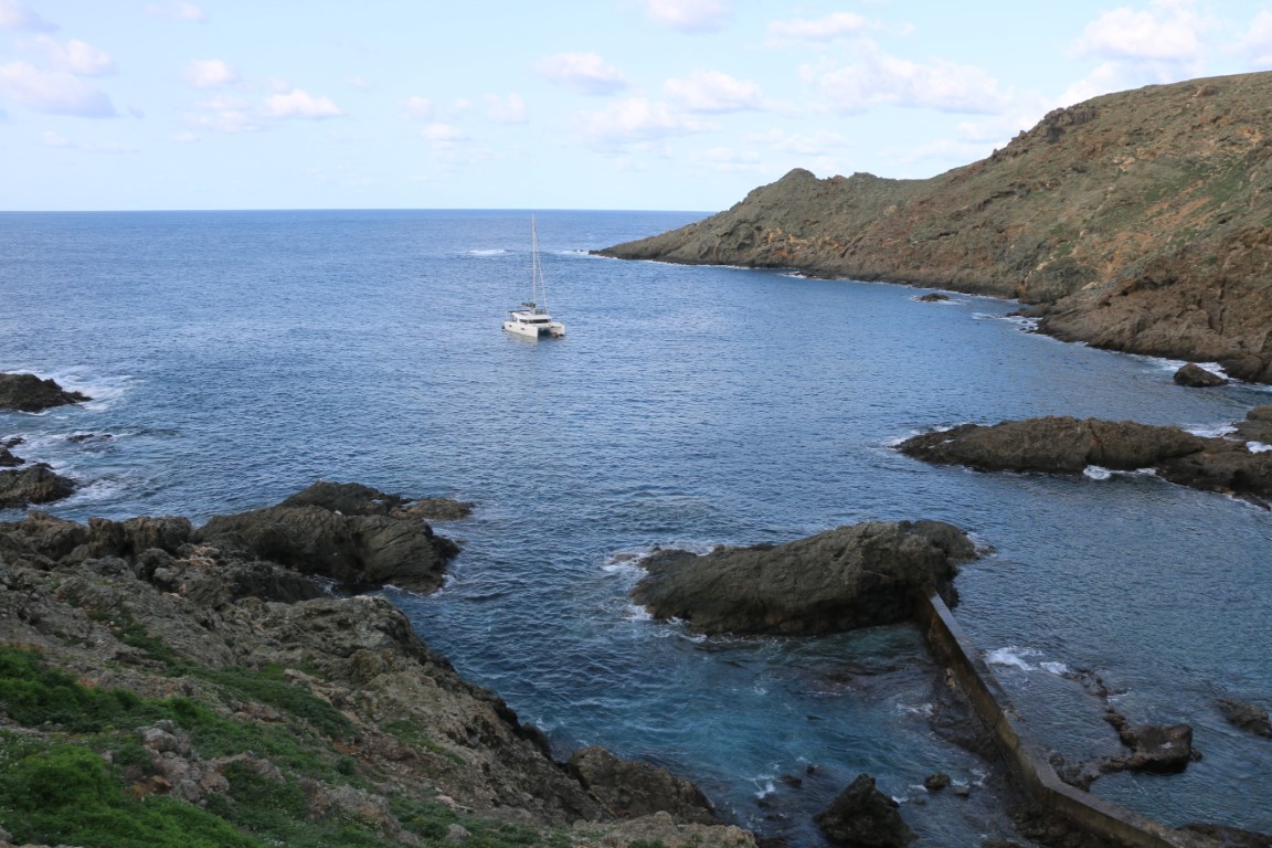 Karin ist auch ganz begeistert von der Insel und bemerkt, dass es den Stopp wert war. Kurz nach 12 Uhr geht es von der Mooring los. Leider wird am Nachmittag der Wind immer weniger. Und für mich toll: Mit einer erfahrenen Seglerin wird viel diskutiert: Sie steht auf dem Standpunkt, alles unter 5 Knoten ist kein Segeln. Da wird dann motort. Ich bin ja eher der Langfahrt-Segler: Flauten werden durchgestanden. Doch dann kommt von ihr das Argument: Der Motor steht kaputt. Man soll ihn hin und wieder ordentlich ausfahren. Das stimmt nun wirklich und diskussionslos. Und von November bis Januar sind REs Motoren nicht gelaufen. So stimme ich zu und wie werfen einen Motor an. Einer reicht für 5 Knoten Fahrt. 2 bringen nur einen Knoten mehr Fahrt. Also verkünde ich: Ich spendiere 2 Stunden mit jedem Motor. Leider nimmt gegen Abend der Wind vollkommen ab, so dass der Backbord-Motor während ihrer ganzen Wache laufen darf.