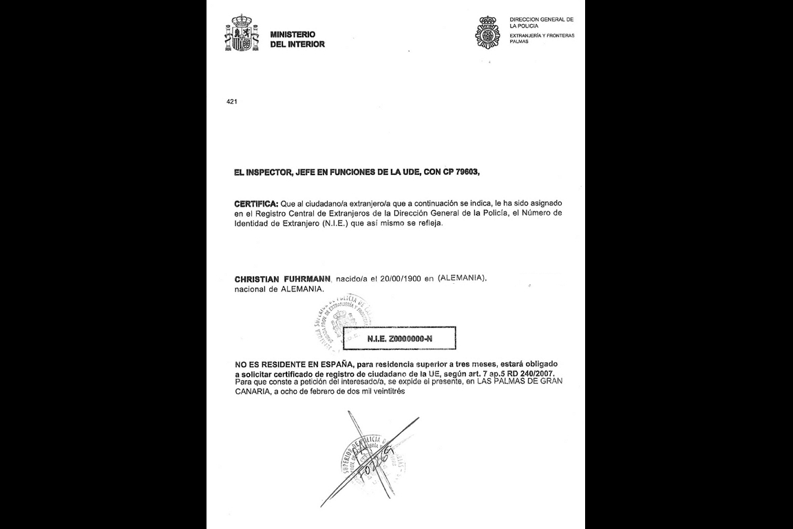 RE und das Polizeipräsidium, das NIE-Zertifikat.
