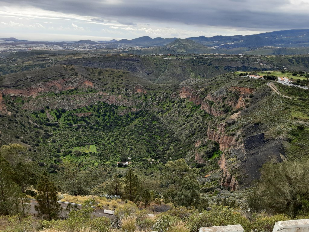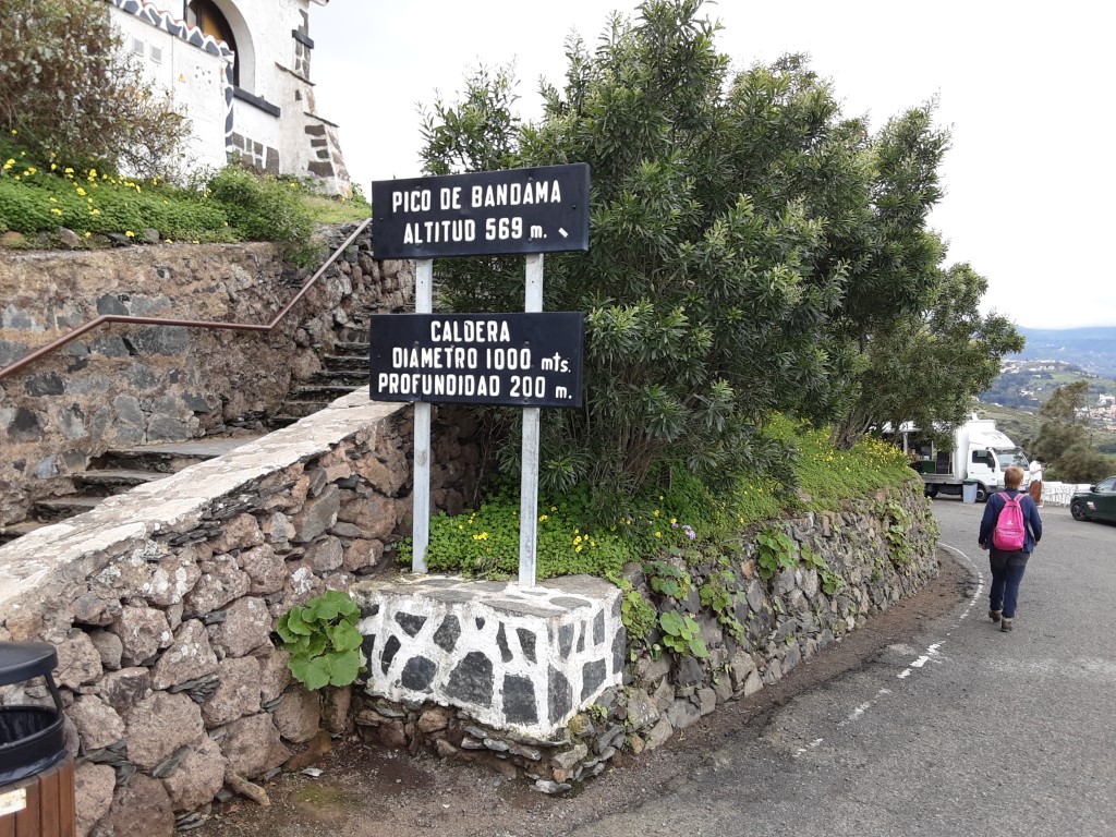 Der Rest des Tages war dann mit einer netten Wanderung in einen Vulkankrater verplant. Zuerst auf den Pico de Bandama hinauf. Eine breite Strasse führt in die richtige Richtung. Also fahren wir noch ein paar Meter. Und noch ein paar. Und… Irgendwann kapieren wir, dass die Straße wohl bis ganz oben führt. Nein – das ist nichts für uns. Vor einem Restaurant finden wir einen Parkplatz und dann stapfen wir den Rest des Weges bis ganz nach oben.