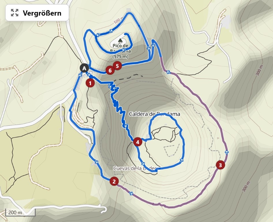 Oben gibt es einen wunderbaren Ausblick in den Krater und damit auf unseren Weg für die nächsten Stunden.