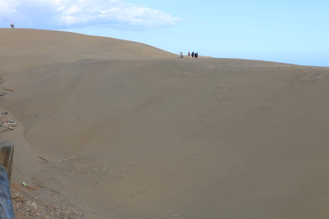 Die Düne von hinten ist auch sehr schön, aber es fehlt der frische Wind. Und Karin hatte groß verkündet: Kein Sand mehr stapfen. Nur auch der avisierte Holzbohlenweg ist nicht da. Also der Weg schon. Nur die Holzbohlen nicht. Also wieder Sand-Stapfen.