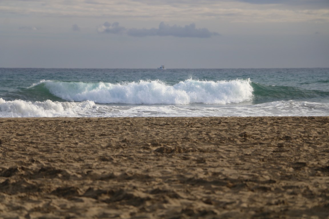 Am Strand ist eine große Karavane. Wir sind nicht die Einzigen, die zunächst ostwärts ziehen. Von nackt bis dicker Pullover ist unter den Strandwanderern alles vertreten. Barfuß geht es für mich an der Waterkant entlang. Das ist so besonders zu betonen, da ich dann humpeln muss. Das linke Bein ist ja mehr als 2 cm zu kurz. Ich bin gespannt, wie es mir damit geht, habe ich doch längere Strecken seit der Operation vor knapp 2 Jahren immer mit den orthopädischen Schuhen gelaufen. Am Ende des Tages gehe ich noch mal eine lange Strecke unfreiwillig an der Promenade in Las Palmas ohne Ausgleich. Da merke ich dann mein linkes Knie! Aber am nächsten Morgen ist alles gut.