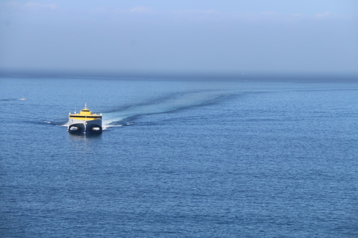 Der Tag begann schon an Bord feucht. Alle Luken waren mit Tau bedeckt. Und in der Luft ist ein dicker Dunst. Ob es nur Wasser oder auch Dreck ist? Man weiß es nicht! Zumindest die Fernsicht ist sauschlecht. Alles verschwindet im Dunst.