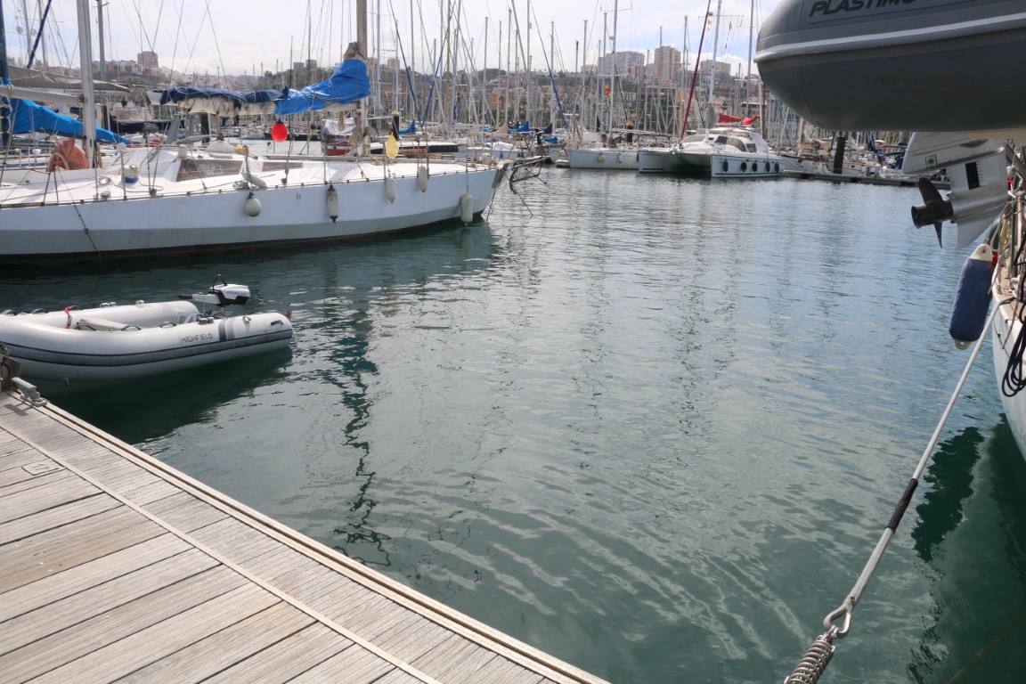 Dann Boot klar machen. Die Fender müssen neu sortiert werden. Die Motoren freigeschaltet werden. Die Leinen umsortiert werden. Dann Leinen los und rüber. Klappt wunderbar. Minuten später liege ich fest. Römisch-Katholisch. Also: Mit dem Heck an den Steg, jeden Bug an eine Mooring-Leine.