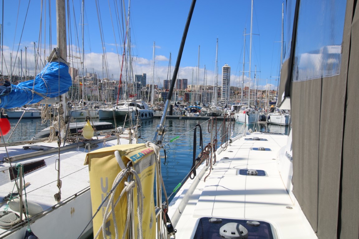 Ich möchte einen anderen – insbesondere billigeren Liegeplatz. Um 12 Uhr sitze ich da. Es ist der Murkel, der nicht so recht englisch spricht. Macht die Sache nicht einfacher. Aber am Ende verständigen wir uns: Es gibt keinen Platz in der Marina und ich gehe raus in das Ankerfeld. Also rechnen wir die Zeit 02. bis 04. März ab. Auch hier sind seine Fähigkeiten begrenzt. Er kommt auf eine Nacht. Ok – da sag ich nun nicht nein. Und bezahle dann 47,80 €. Er will fertig sein, aber ich will ja auf Dauer in der Marina einen Platz. Also: Ob er sieht, wann ein Platz frei werden würde. Nein – er macht keine Reservierungen. Gut: Nächste Frage: Soll ich nun jeden Tag reinkommen und nachfragen? Versteht er nicht. Von links und rechts – da sitzen die beiden Kollegen, die deutlich mehr Englisch sprechen, wird ihm meine Anfrage übersetzt. Dann beginnt ein minutenlanges Gespräch mit dem Kollegen rechts. Am Ende werde ich hochnotpeinlich befragt, wie lange ich denn bleiben wolle. Mit meiner Antwort, dass das auch am Wind abhängt, aber sicher noch 7 – 10 Tage, kann er nichts anfangen. Er zeigt mir einen Kalender und tippt auf die verschiedenen Tage. Fragt wieder: Bis wann? Entnervt gebe ich auf und zeige auf irgendein Datum. Das wiederum versteht er. Nun beginnt eine lange Zeit, in der er auf seinen Monitor schaut. Einen Spiegel hinter ihm würde ich gerne haben: Spielt er eine oder eher doch zwei Runden Solitär? Endlich schaut er auf und verkündet: 275,- €. Gut – das ist jetzt unter 20,- € pro Tag. Ich nehme an. Diskussionen versteht er doch nicht und nun haben wir mal was festes. Ich wundere mich: Anscheinend hat er doch einen Liegeplatz für mich gefunden! Und so ist es auch: Bezahlen und ich werde an die große Tafel geführt. Umständlich zeigt er mir den neuen Liegeplatz: Ponton T – 17/19. (Als Katamaran bekomme ich immer einen Doppelplatz.)