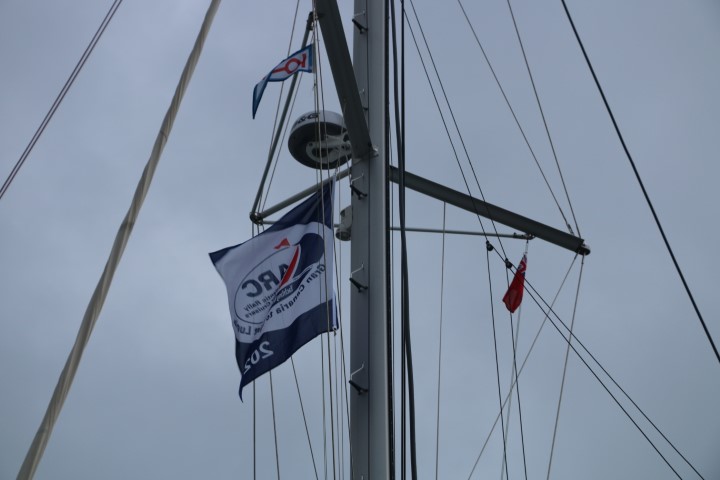 Und da fliegt die ARC 2021-Flagge in unserem Mast: