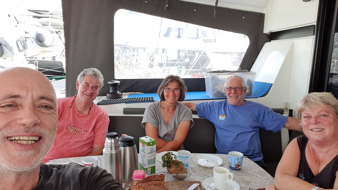 Dienstag macht Arnd mit mir eine Einkaufstour. KIBO hat sich einen Wagen geliehen und da kann man weiter entfernte Läden (Baumärkte!) anfahren. Und auch größere Mengen einkaufen (Lidl!). Gut ausgerüstet und schwer beladen komme ich wieder an Bord.