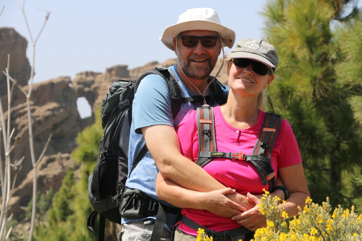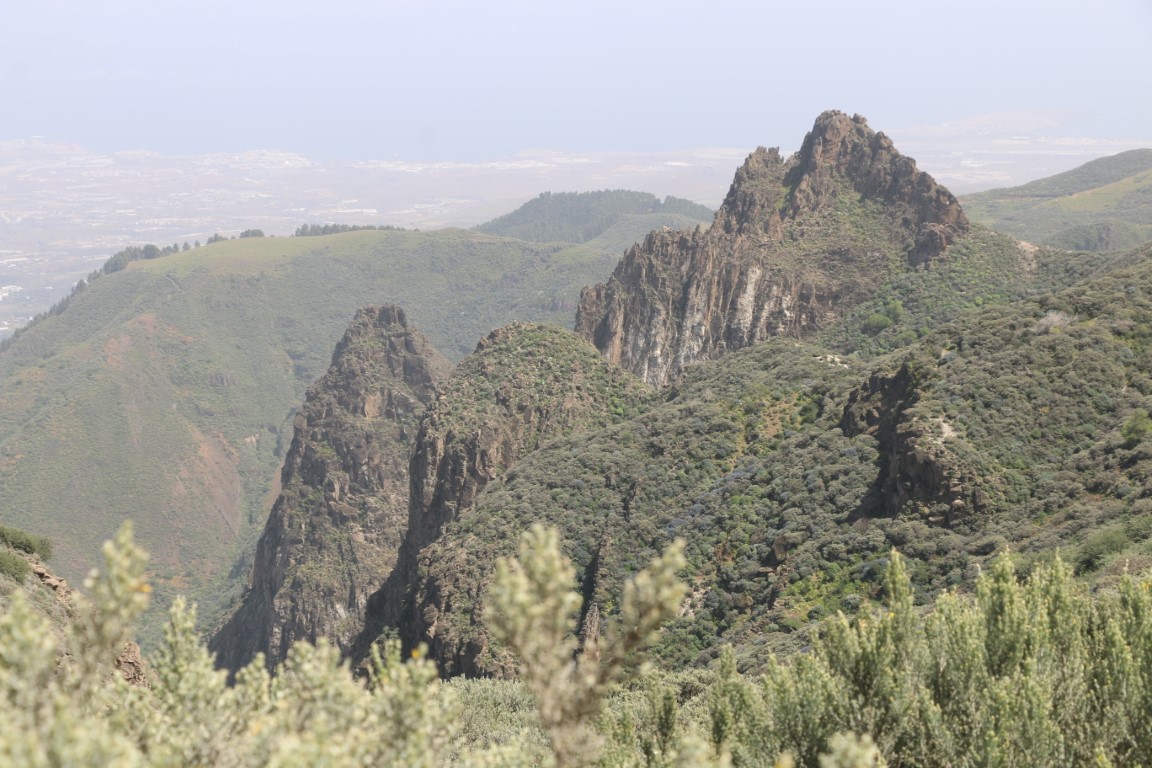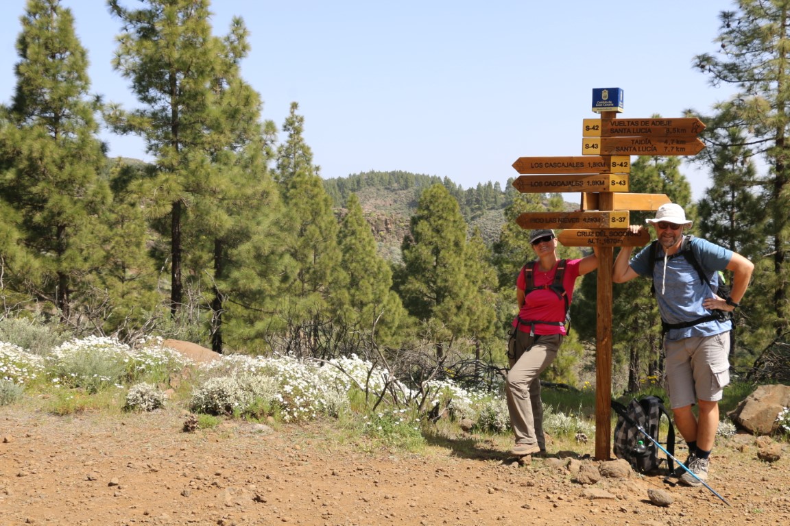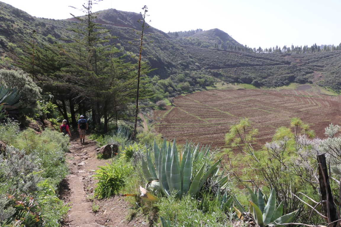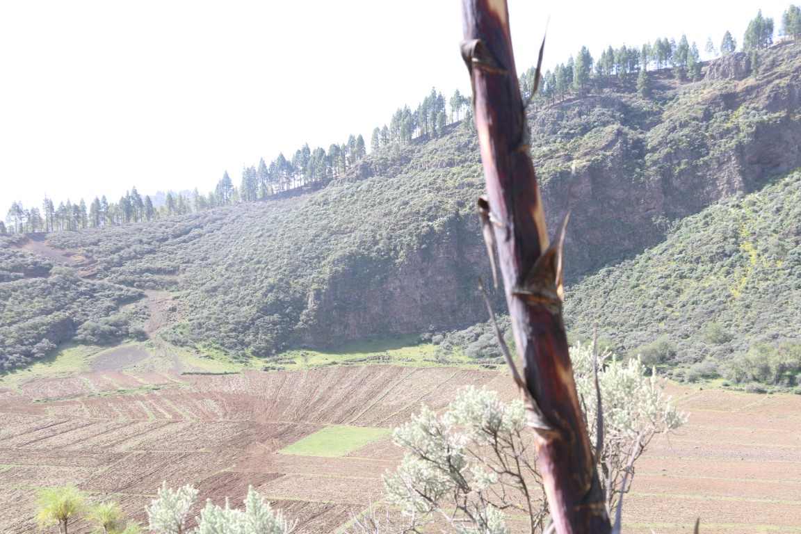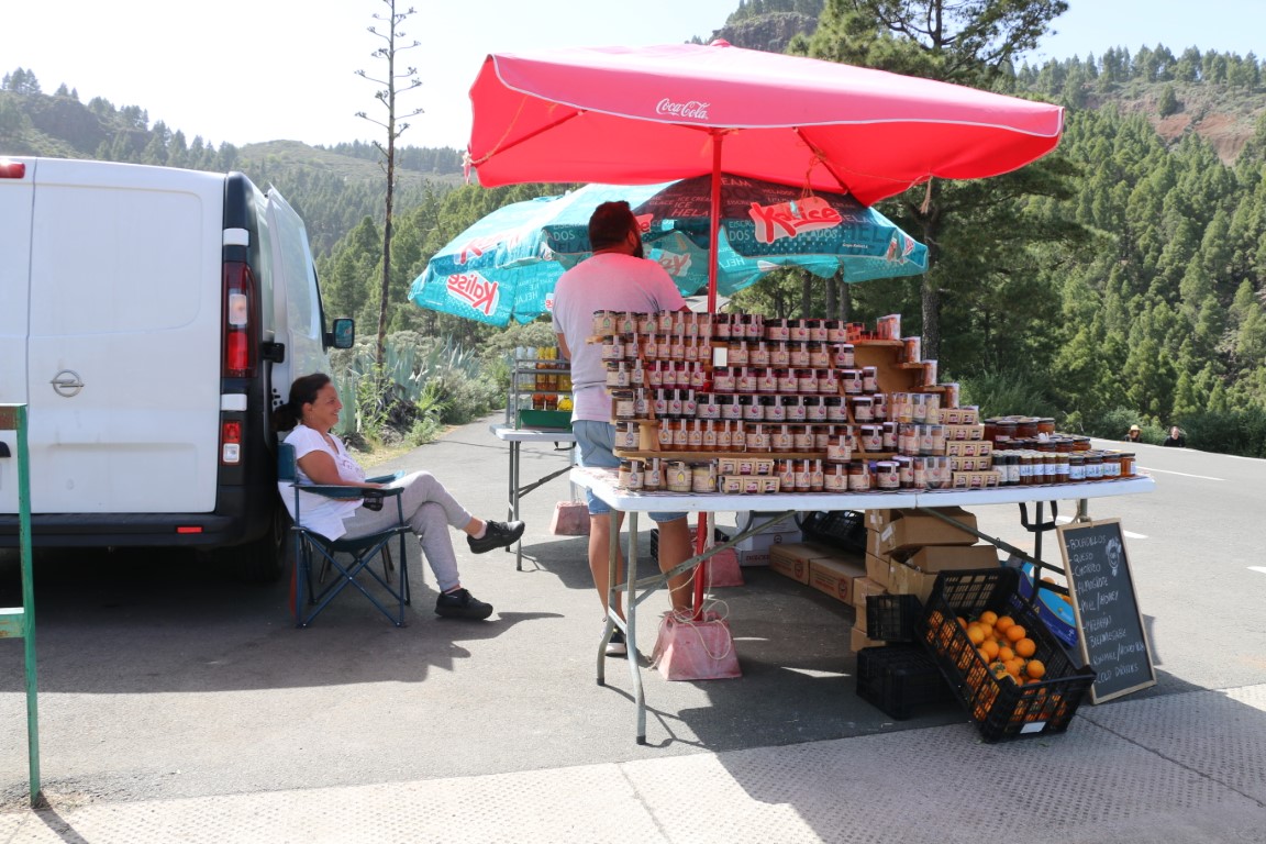 Leise, fast wie Schnee, knirscht es. Wie angepriesen wandern wir durch Lava-Felder. Arnd hat eine wunderbare Tour rausgesucht. Und die KIBO-Crew hat mich mitgenommen. In einen Vulkankrater hinunter, auf der anderen Seite wieder rauf. Dann einen langen Aufstieg teils durch Kiefer-Wälder bis wir dann am Roque Redondo auf über 1800 m ankommen. Eine kleine Rast mit ein wenig Verpflegung. Dann ging es wieder abwärts. Am Ende gab es dann auf dem Parkplatz an einem Stand eine Dose kalten Biers. Herrlich.