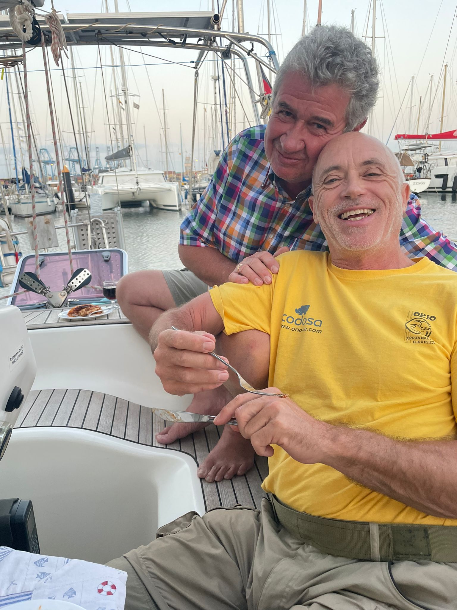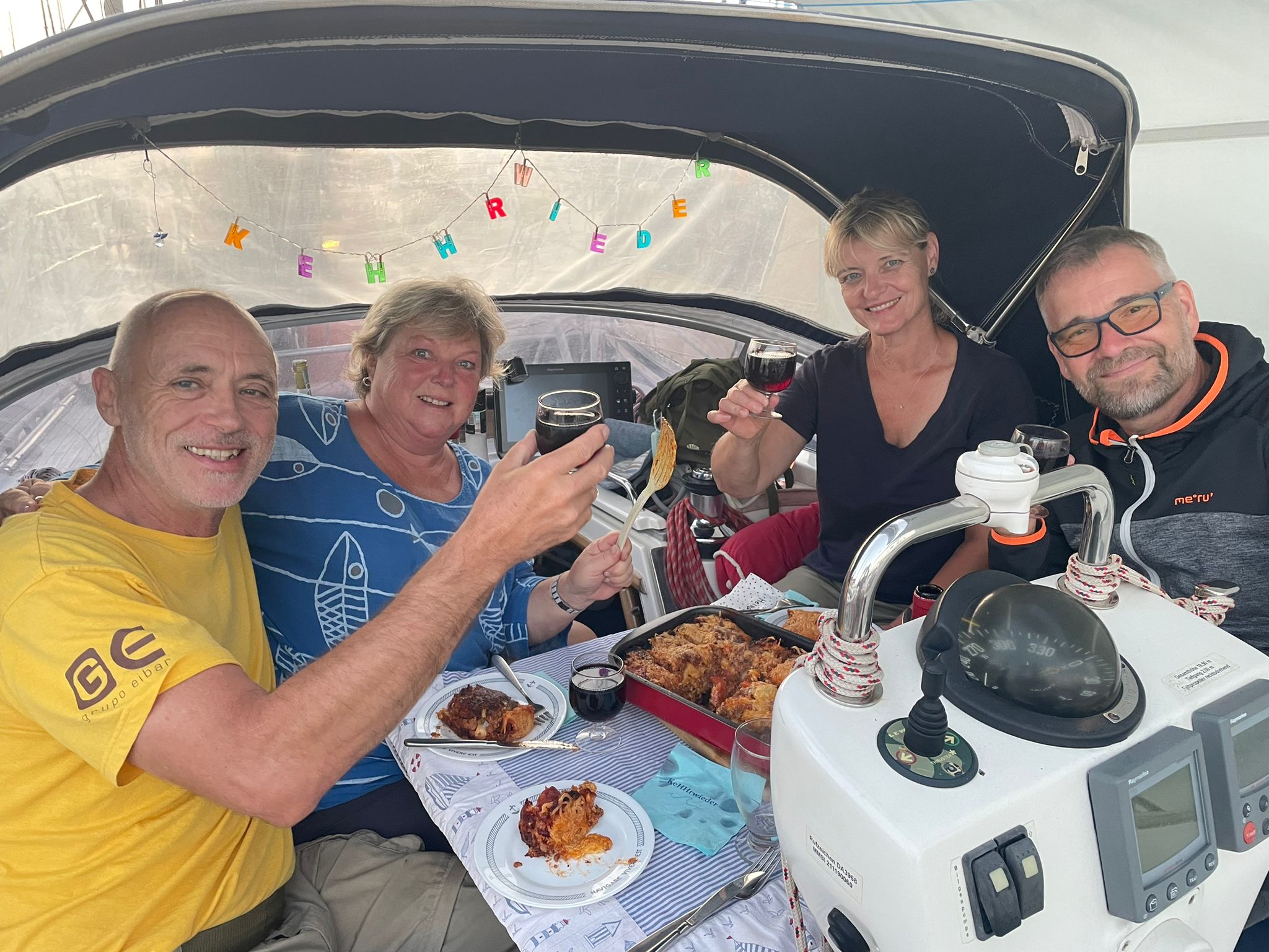 Doch nun kommt Arnd: Das würde kühl werden auf einem Einrumpf! Ja – wir Katamaranis sind verwöhnte Weicheier! Nun doch lagen Hose anziehen und einen Flies mitnehmen. (Kam am Ende dann wirklich gut!)
