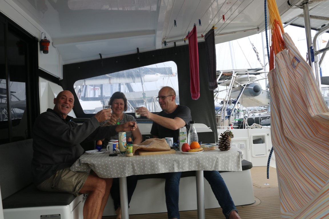 Mit eineinhalb Stunden Verspätung sind sie gestartet, entsprechend später dann auch hier eingetroffen. Die Ingebrandts sind dann aber doch noch angekommen. Große Begrüßung und gleich ging das Schwatzen los. Und nach dem langen Sitzen dann als Ausgleich eine kleine Wanderung in die Altstadt von Las Palmas. Das sind erst mal 4 Kilometer Anmarsch. Links Wasser, rechts die GC1 – die canarische zweispurige Schnellstraße. Aber: Wir konnten Sonne bieten, für die frisch aus D Angereisten sicher ein großer Pluspunkt.