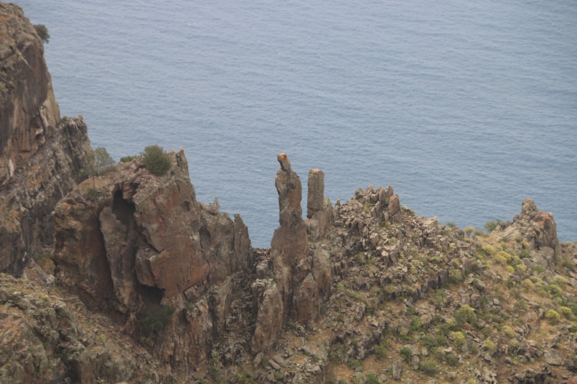 Die Wanderung führt zunächst einmal abwärts. Nun – da weiß man dann, was die zweite Hälfte des Rundkurses zu bieten hat! Erster Zwischenstopp auf einem Aussichtspunkt mit Blick über den Atlantik und Agatea. Und dann: Weiter abwärts. Der Weg ist als mittelschwer klassifiziert, heißt, dass man stets hinschauen muss, wo man hintritt. Um „die Gegend“ zu genießen muss man stehen bleiben. Irgendwann wird die Crew quengelig. „Wann sind wir unten?“ Und dann tritt sie in Streik. Ich gehe noch bis zum tiefsten Punkt der Strecke, aber da die Crew sitzen geblieben ist, muss ich zurück. Und dann drehen wir um, noch mehr Höhenmeter wollen sie nicht machen. Ohne den Schlenker zum Aussichtspunkt geht es dann zum Wagen zurück. Allgemeine Zufriedenheit sieht anders aus, aber ich finde, wir haben wieder mal ein interessantes Stück Gran Canaria kennen gelernt.