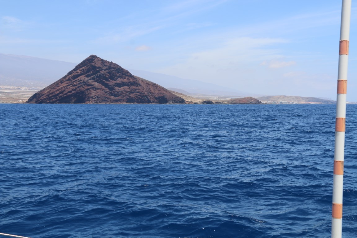 Bald nach 15.00 Uhr stehen wir vor unserem heutigen Ziel. Segel runter, unter Motor untersuchen wir eine ruhige Bucht. Sie ist mir aber unangenehm. Die Wassertiefen in der Karte und vor Ort stimmen nicht überein. Der Wind steht auflandig. Nein – das mag ich nicht. Also lieber zurück in die Bucht von Las Galletas direkt vorm Hafen. Da liegen zwar ne Menge Schiffchen, aber wir entdecken, dass das Dauerlieger vor Anker und Mooring sind. Die schwojen also nicht herum. Da legen wir uns in die äußerste Position. Nicht ganz so ruhig, was das Schaukeln angeht. Aber gut erträglich. Michèle geht schnorcheln, kommt aber mit der Meldung zurück: Absolut uninteressant!