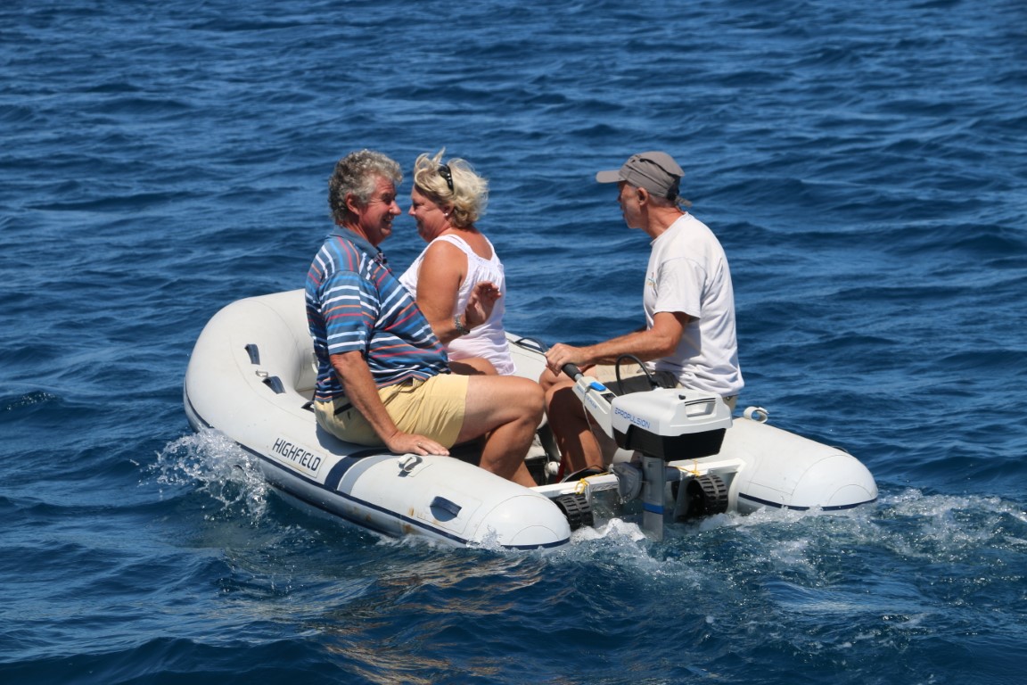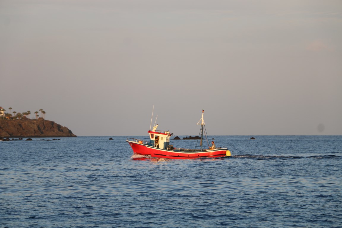 Treff: Am großen Platz gegen 12 Uhr. Oh – das ist nichts für Michèle. Wo denn? Ich meine dann immer, so viele große Plätze wird es in so einem kleine Ort schon nicht geben. Aber schon kommt das nächste Problem: Wo anlanden? Ein richtiges Dinghy-Dock gibt es in Las Galletas nicht. Und die Stege sind mit selbstschließenden Türen abgeschottet. Da leg ich mich ganz hinten ans letzte Eck bei den Fischern. Die sind meist nett. Und: Hier kann ich, falls die Tür geschlossen sein sollte, problemlos um den Zaun klettern. (So kommt es dann nachher auch: Tür zu – Chrischan klettert….)