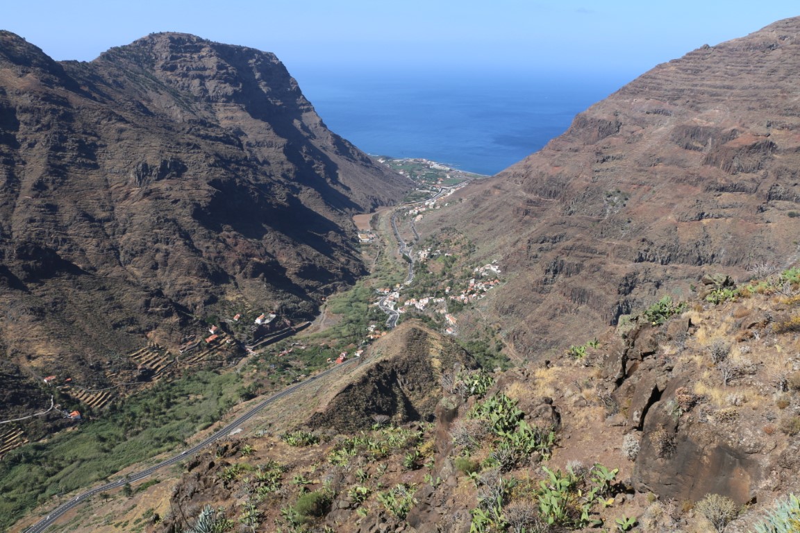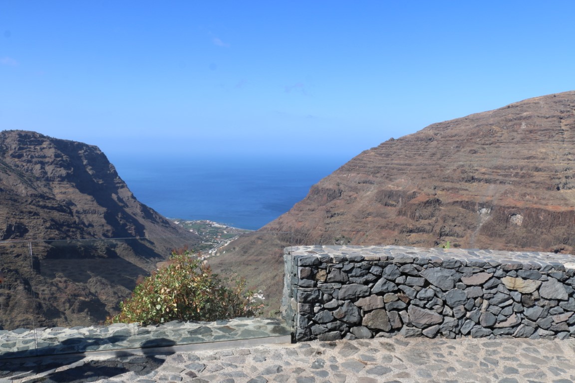 Wir haben ja schon zwei Anläufe für eine Wanderung im Parque Nacional de Garajonay gemacht. Nun denn – heute mit eigenem Wagen. Und das klappt. Zumindest erst mal… Dann sind wir im Nebel oben angekommen und das Thermometer zeigt noch 13°. Isolde hat ihre Jacke schön auf dem Tisch liegen lassen. Nun möchte sie eine neue kaufen und so schlägt Michèle vor, dass wir das Programm umdrehen: Erst Valle Gran Rey, dort Einkaufsbummel und Cafe. Dann wieder zurück und Wanderung.