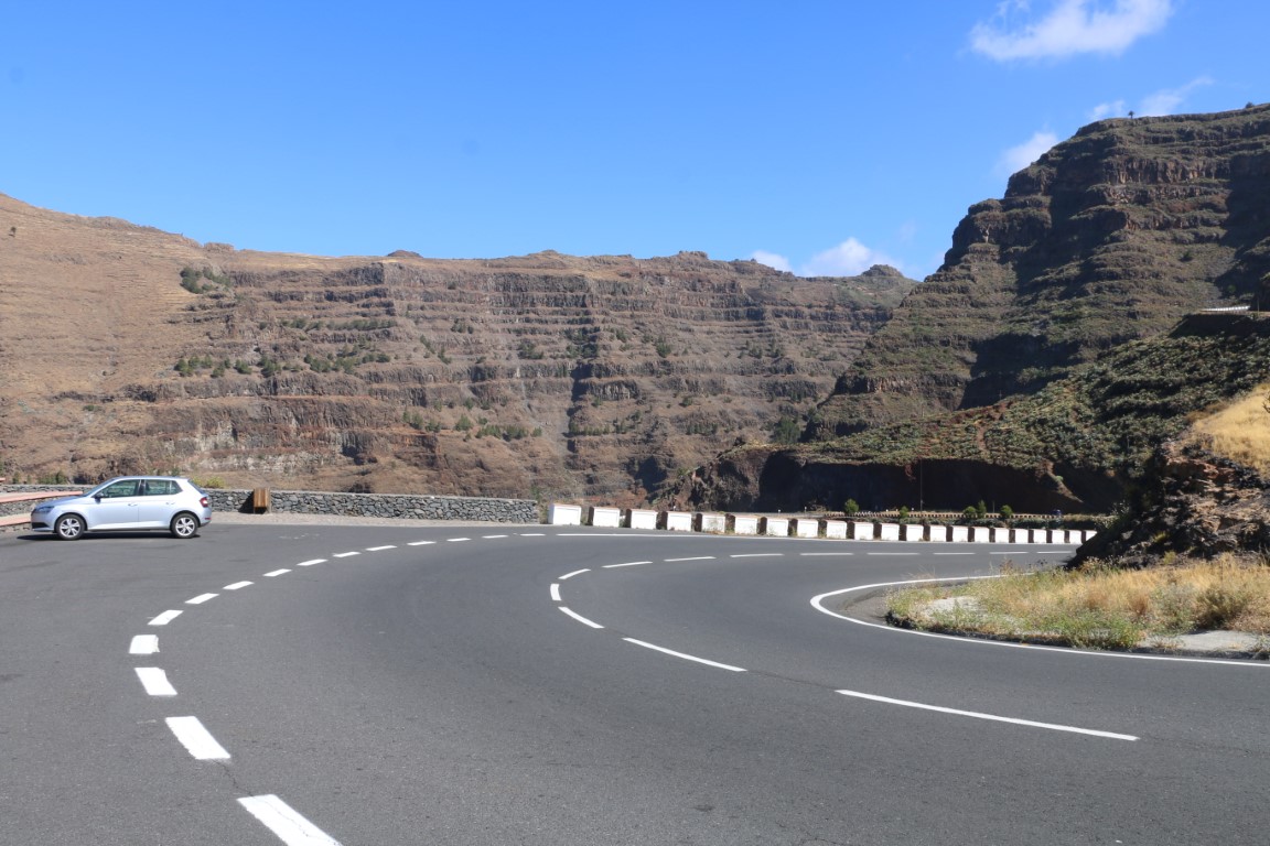 So halten wir und machen Japaner-Besuch. An jedem schönen Ausblick halten, raus, Fotos machen, rein in den Wagen und weiter. In Valle dann wie geplant einen Einkaufsbummel. Isolde bekommt eine neue Flies-Jacke, Michèle einen Dreierpack T-Shirts und ich eine Buff-Mütze. Die deutsche Ladenbesitzerin ist schon 35 Jahre hier. Nein – es sind nicht alles nur Deutsche hier, nein, es würde auch Spanier geben. Aber irgendwie ist es schon recht deutsch besetzt hier. Überall ist das erste Sprache, viele Verkäufer sind Deutsche, viele Kunden auch. Irgendwo zwischen Aussteiger, Hippies und Rentner bewegt sich das ganze Klientel. Ooops – passen wir rein?