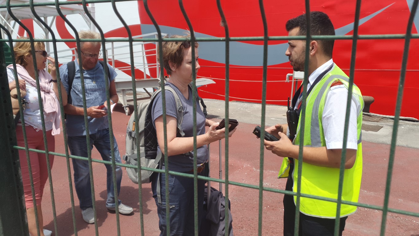 Isoldes Aufenthalt nimmt sein Ende. Ganz ruhig und langsam. Spätes Aufstehen, noch ein wenig zusammensitzen und dann die paar Schritte zur Fähre. Während sie „boardet“ - bei so langharigen Bombenlegern wahlweise Drogenschmugglern reicht der Fahrschein nicht, sie muss den Personalausweis vorzeigen! - quatscht uns eine Dame mittleren Alters an. Am Ende stehen wir mit der noch lange nachdem Isolde am Horizont verschwunden ist an der Mole. Gut – der Horizont bei uns ist arg begrenzt durch die Mole. Aber sie ist Reiseführerin einer deutschen Gruppe des Kreuzfahrers. Und hat gerade nichts zu tun. Will aber allein auch nicht zu weit „in die Insel“, um die Abfahrt nicht zu verpassen. So haben wir nun ein neues Bild: Chinesen sind die neuen Russen. Was schlechtes Benehmen anderen gegenüber betrifft. Zeigen, dass man zu Geld gekommen ist.