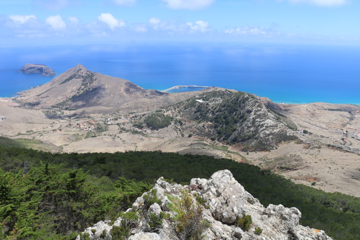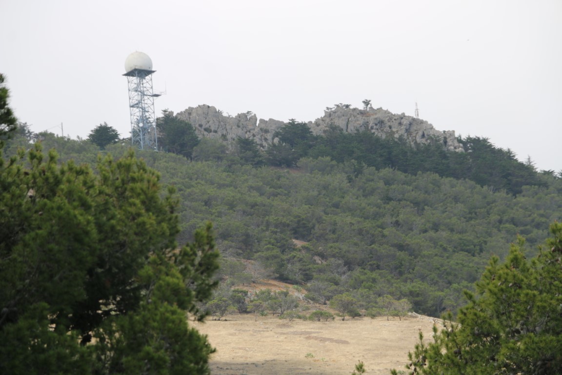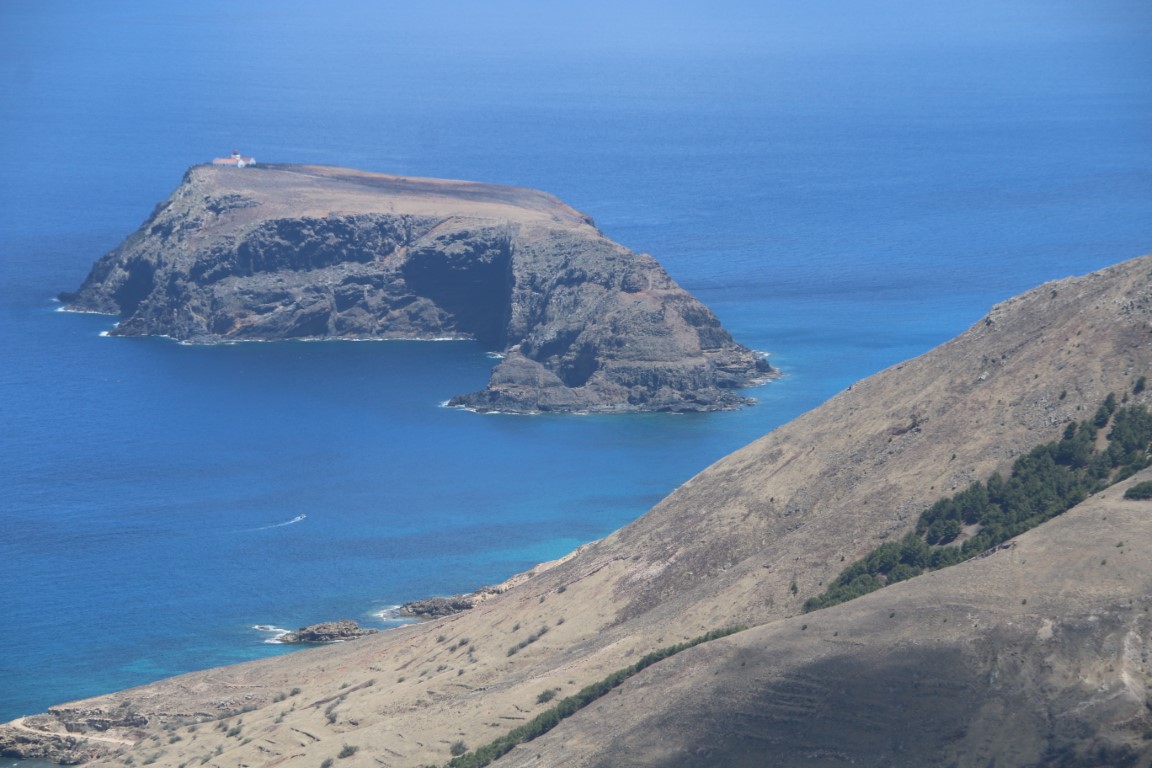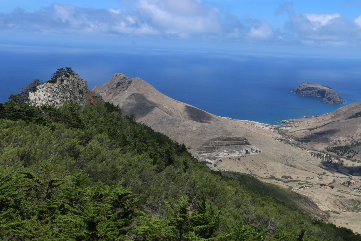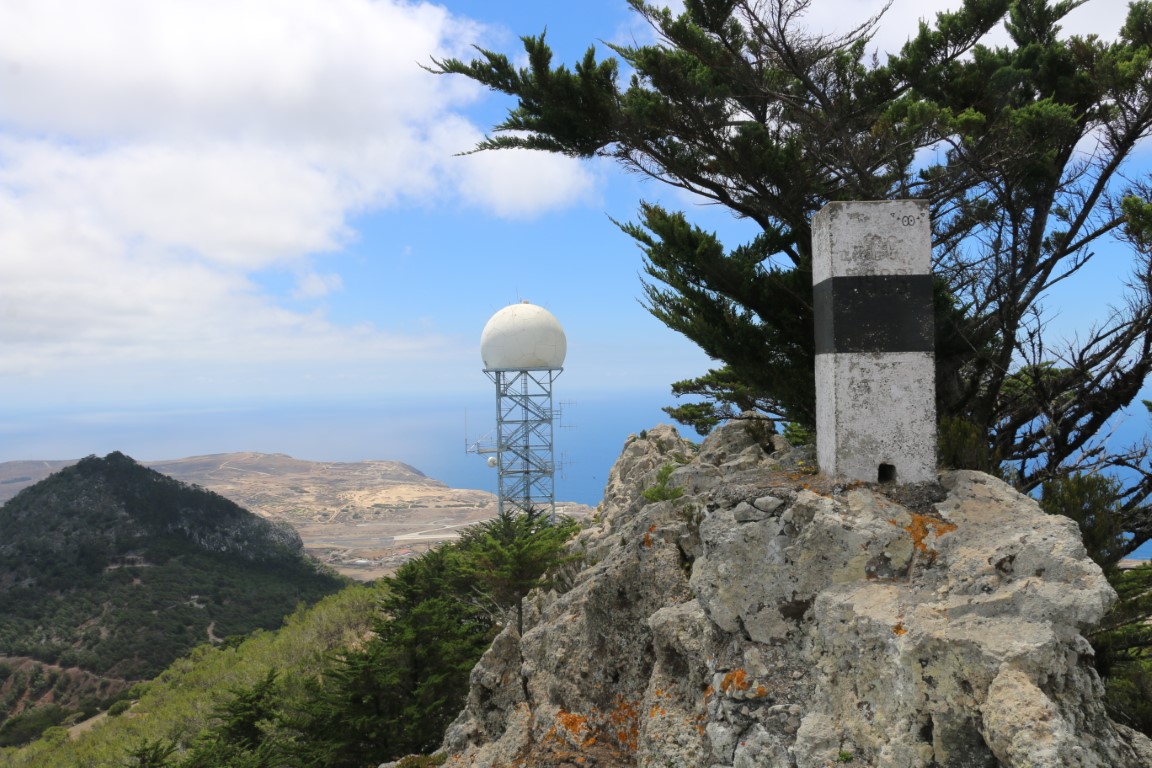 Auf dem Übergang zum Pico Facho finden wir dann einen tollen Weg. Gut für Autos. Das geht wohl hoch zur Radarstation. Den nehmen wir! Und kurz vor dem Gipfel geht es rechts ab in einen schmalen Bergpfad. Das muss zum Gipfel gehen. Am Ende dieses Weges finden wir die Funkstation. Den Mast konnte man schon lange über den Bäumen sehen. Dahinter geht es dann richtig steil weiter. Michèle lässt das lieber bleiben. Ich klettere die paar Meter hoch und stehe dann auf dem höchsten Punkt. Viel Standfläche hab ich nicht. Und so wird der Versuch ein Rundschwenk zu filmen recht wackelig….