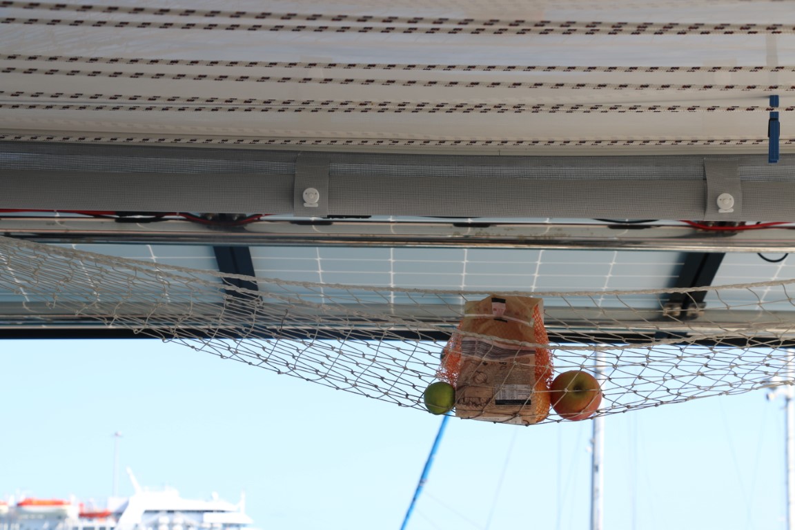 Nach dem so erfolgreichen Einkauf gestern kann ich den Sonnenschutz nun (fast komplett) fertig machen. An beiden Seiten schaut die Plane ein wenig hinaus, deshalb muss da die Stange tragen. Und natürlich darf die nicht rausfallen, muss also eingenäht werden. Das mache ich lieber per Hand. Dann die letzten Laschings, um die Plane auch aufgerollt zusammen zu halten. Eine Foto-Session rund um RE rum. Und fertig! Zumindest fast: Da muss dann noch dieser Beitrag geschrieben werden und … es fehlen noch zwei Verschlüsse an der dritten Plane. Die gibt es zurzeit nicht. Steht also ab jetzt auf der Langzeit-To-Do-Liste.