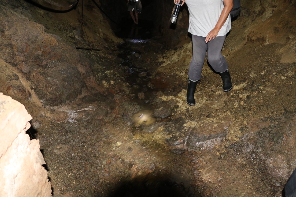Der Tunnel ist größtenteils mehr als 1,80 m hoch, der Boden natürliche Steine. Dazwischen immer wieder langsam fließendes Wasser. Die letzten 50 Meter dann ca. 5 cm hoch Schlamm. Darunter aber der feste Stein. Die Sache mit den Gummistiefeln war gut.
