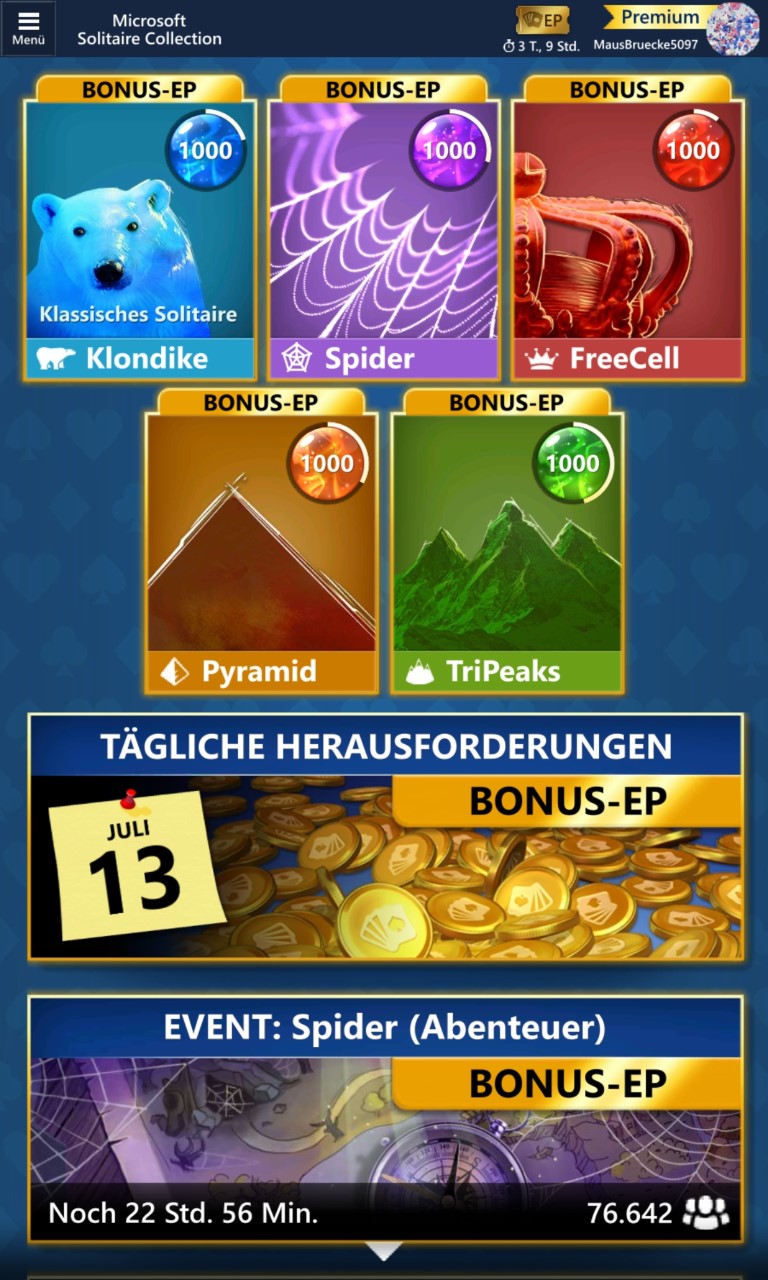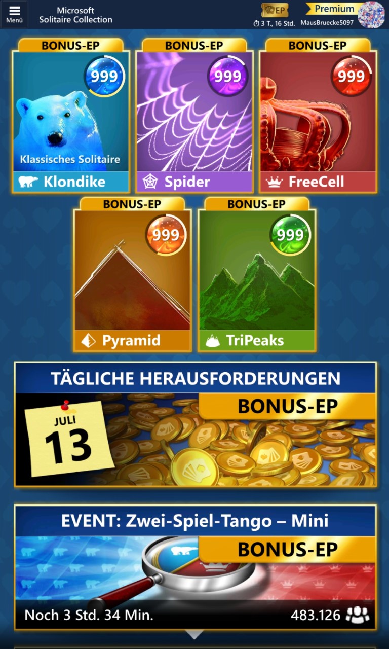 Heute war dann das Spielkind (Zitat Mutter Fuhrmann) in Höchstform: Ich daddel gerne und fast täglich Solitär – in der Version von Microsoft, muss ich zugeben. 5 verschiedene Varianten. Und in jeder gibt es „Erfahrungspunkte“. Heute komme ich – nach knapp 8 Jahren an die Schallgrenze zu vierstelligen Werten. Und so habe ich schon in den letzten Tagen aufgepasst, dass alle Varianten etwa die gleiche Punktzahl haben. Und nun durchschreite ich das Tor: Wer die Bilder sieht und Monk kennt, wird den Gedanken nicht verwehren können, dass in mir auch ein kleiner Monk steckt!