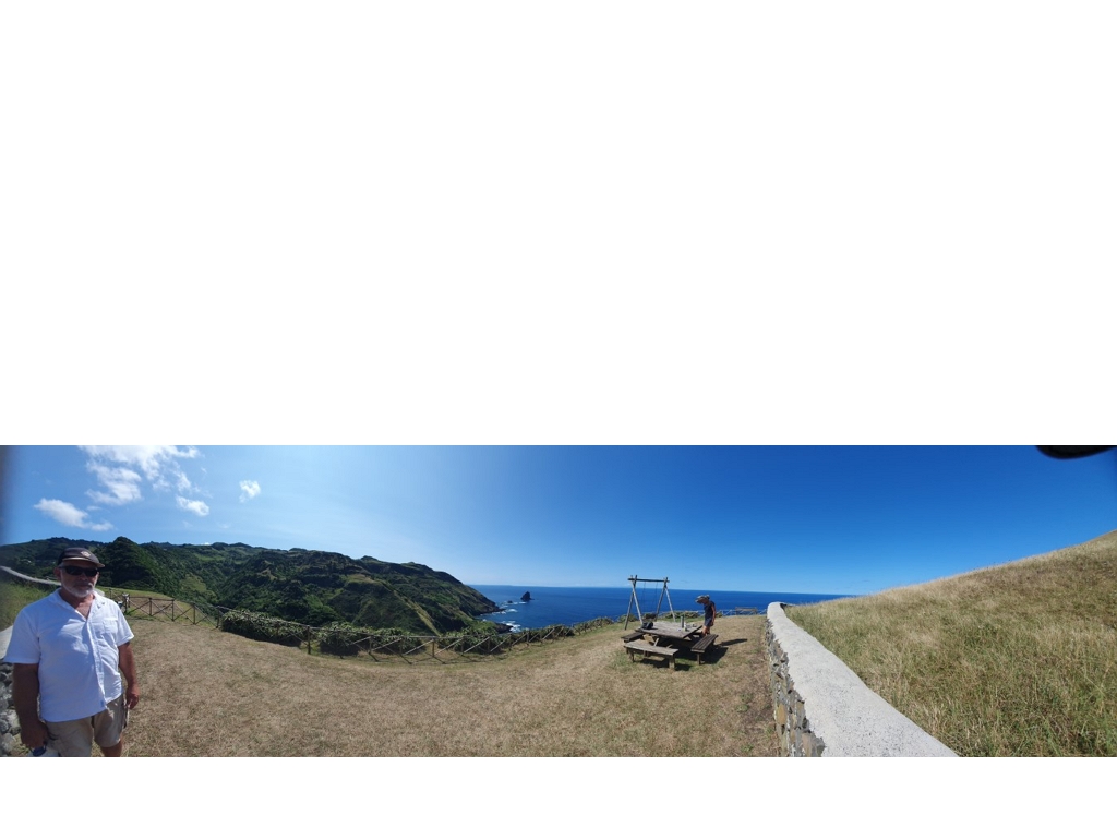 Unsere Tour führt uns zu einer Landspitze mit Picknick-Platz und (!!) Schaukel. Herry ist vor gefahren und hat aufgetischt! Wahnsinn. Ein Super-Ausblick auf Küste, Meer und Sao Miguel.