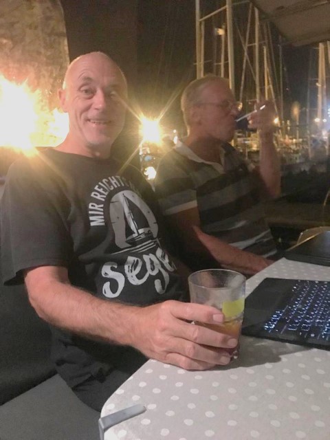 Wegen Starkwind-Warnung für die nächsten Tage hole ich die schweren Festmacher mit Ruckdämpfer raus. Bis die angebracht sind, ist es 20 Uhr – Zeit für einen Sundowner mit Lieve und Derk von der MINE’S A DOUBLE. Dazu wird uns Hafen-Kino serviert: Zwei Boote versuchen verzweifelt anzulegen. Wir schauen und an und schütteln den Kopf. Anscheinend ist das Prinzip bei einem Einrümpfer mit mindestens 7 Leuten an Oberdeck: Ich mache es so schwierig wie möglich. Anstatt einfach gerade in die Box zu fahren, wird sowohl rückwärts wie auch vorwärts versucht, mit einem 90°-Kehre einzuparken. Damit es spannend ist, mit möglichst viel Fahrt. Funktioniert nicht. Nach einer halben Stunde sind so viele Helfer auf dem Steg, dass die recht junge Skipperin sich entschließt einfach geradeaus vorwärts in die Box zu fahren. Schade – nun liegt sie fest.