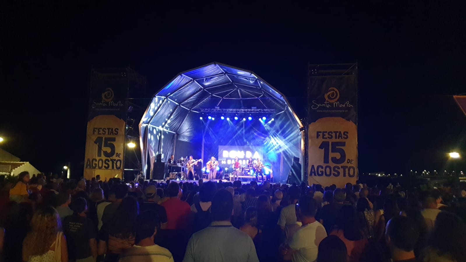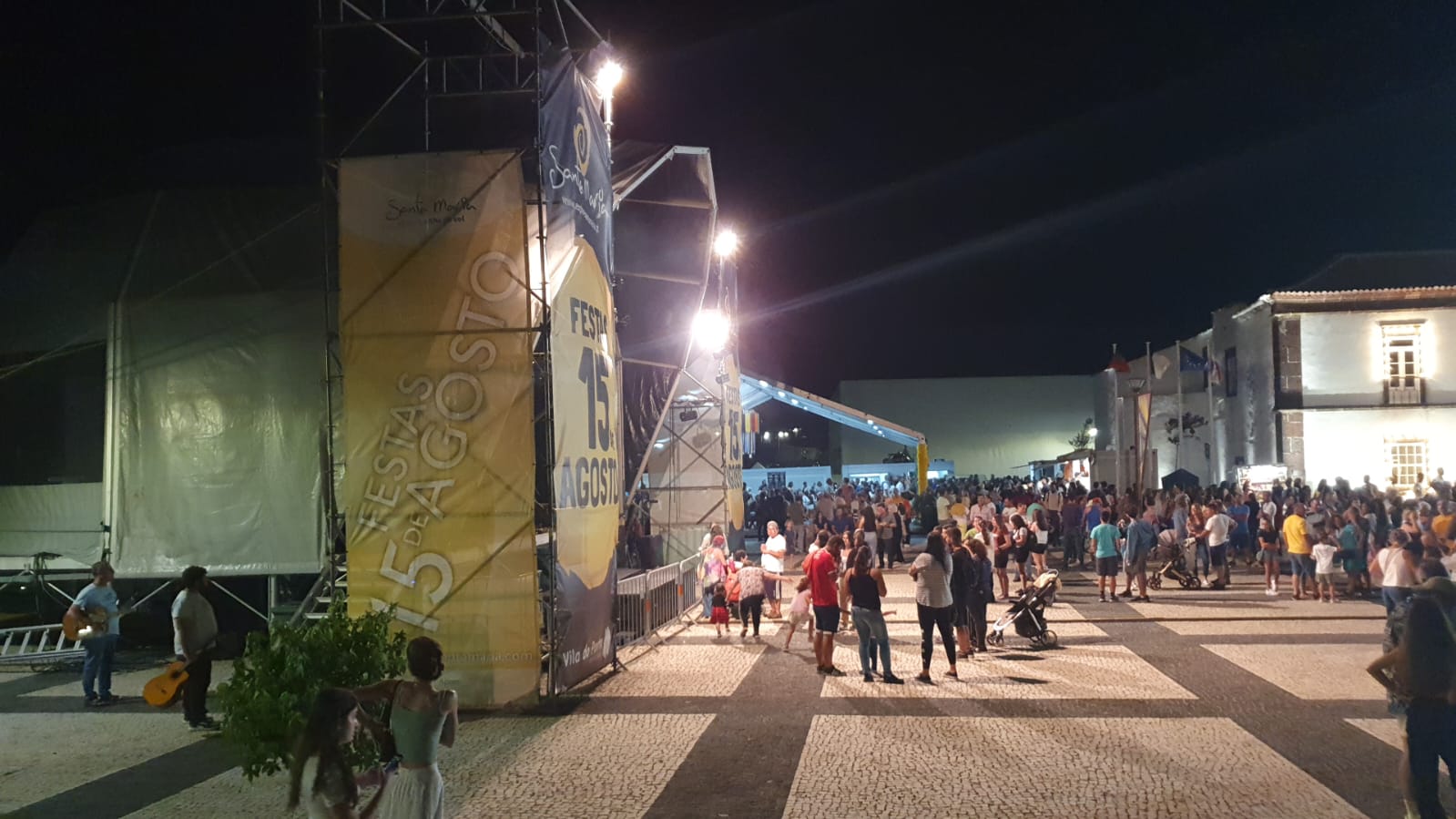 Ronda da Madrugada heißt die Band, die das Musik-Event zum 15. August (Mariä Himmelfahrt) einläutet. Es ist wohl „die“ Band von Santa Maria. Folkrock – und die meisten Zuschauer kennen die meisten Lieder. So wird mitgesungen, Mitklatschen ist auch kein typisch deutsches Verhalten! Um ein großes Festzelt sind Verkaufsbuden. Bier kostet (200 ml) 1,- €. Es ist fröhlich und ausgelassen, Kinder wuseln überall zwischen den Beinen rum, aber betrunken und ausfällig ist niemand. So finde ich das schön.