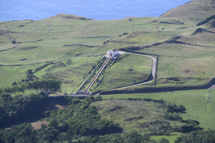 Zunächst mit dem Fahrrad. Teile der geplanten Strecke sind gesperrt: Heute ist im Zuge der Festivitäten zum 15. August (Maria Himmelfahrt) eine Ralley. Ich dachte, es ginge um Oldtimer. Weit gefehlt. Kleine, röhrende, stinkende PKW machen die Insel unsicher! Und das meine ich ernst. Denn die haben tagsüber „freies Training“. Heißt: die durften wohl auf den freien Straßen im normalen Verkehr fahren. Weiß nicht, wie viele Herzinfarkte es bei den Entgegenkommern gegeben hat.… Habe zwei PKW im Straßengraben gesehen. Die haben wohl noch mehr Schreck bekommen als ich… Na ja, solange ich ganz rechts gefahren bin, sind sie auch bei Gegenverkehr an mir vorbei. Abstand immer größer als 5 Zentimeter zur Pedale. War mir aber Angst und Bange. Und zu dem Gegenverkehr hatten sie wohl meist auch mehr als 5 Zentimeter Abstand. Deshalb bin ich dann auf der Straßenmitte gefahren. Dann mussten sie bremsen, bis die Gegenspur frei war.… Aber ich war heilfroh, als ich auf die letzten Kilometer Anstieg abbiegen konnte. Eine Straße, die so gut wie nicht befahren war.