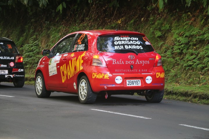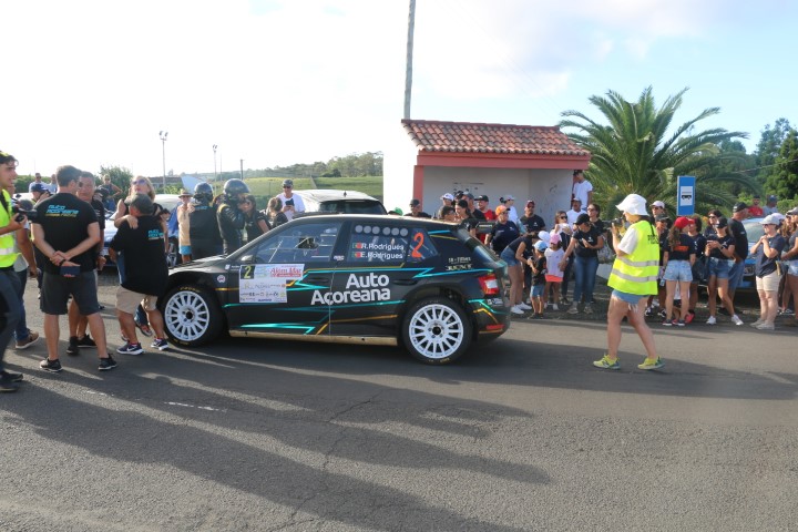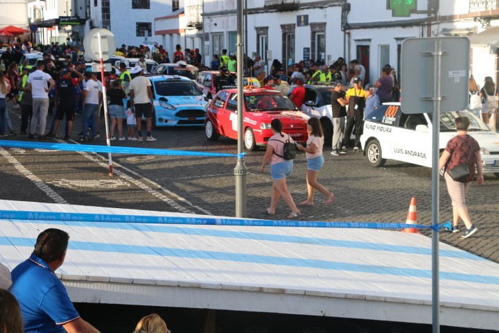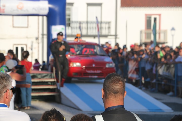 Mit dem Fahrrad zu war dann nett: Nur noch 150 Meter Anstieg, aber 700 Meter abwärts! Mehr als 3 mal so schnell war ich wieder in Vila. Mit viel Durst und total verschwitzt. Durst hat gesiegt: Auf dem großen Festplatz waren die Buden schon geöffnet und ich bekam ein Bier. Und noch eins. Und dann ein riesengroßen Hotdog. Und noch ein Bier. Langsam kam ich wieder unter den Lebenden an. Inzwischen war die Siegerehrung der Ralley angelaufen. Jeder Fahrer wurde stürmisch begrüßt und hielt dann eine Rede ans Volk. Ich verstehe gar nichts. Aber der Erste muss wohl ganz schön rumgeschimpft und vom Leder gezogen haben. Verhaltene Zustimmung. Irgendwann schaffen sie es ihn wieder in sein Auto zu bekommen und dann wird es mit den Nächsten fröhlicher.