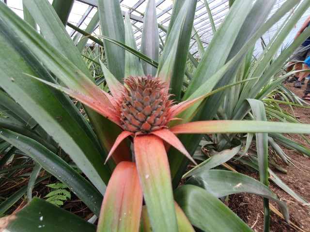 Als letzten Ausflugspunkt haben die Organisatoren sich einen Besuch einer Ananas-Plantage ausgedacht. In Glashäusern mit gekalkten Scheiben wachsen die ca. 50 cm hohen Pflanzen. Der Farmer belehrt uns: In Brasilien in den Tropen können sie zweimal im Jahr ernten, hier alle 2 Jahre. Das Wasser wird von den Dächern aufgesammelt und zeitlich gestreckt zum Gießen genutzt. Damit bekommen sie schön tropische Schwüle hin. Aber der Boden wird ganz schön ausgelaugt. So nehmen sie die Pflanzen einmal im Jahr raus, bearbeiten und tauschen den Boden aus. Und dann kommen die Pflanzen wieder rein.