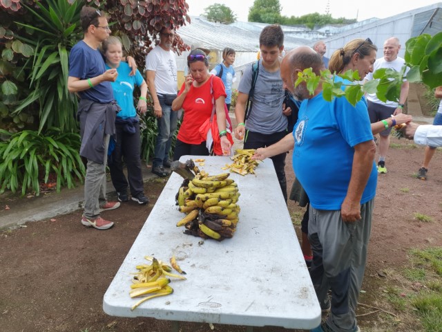 Zur Erbauung einiger schleppen wir uns dann noch durch sein Bananenfeld. Und bekommen am Ende wunderbare Bananen, frisch geerntet. Auch die Ananas ganz reif und frisch ist ein Genuss!