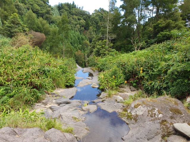 Der Bus selbst ist dann superpünktlich und nimmt mich für 1 € die letzten 3 Kilometer mit. In Vila Franca in „unser“ Cafe. Jetzt bekomm ich ein Landebier! Und Lukas? Der meldet sich von der Kapelle, die wir mit Simone und Martin vor ein paar Tagen besucht haben. Er hat hier noch mal Aufwind gefunden und hat probiert, ins Inselinnere vorzustoßen. Doch da hat es ihn dann erwischt und er hatte das große Absaufen. Gerade noch bis zur Kapelle hat er sich zurück gerettet. Bei meinem zweiten Bier läuft er dann auch im Café ein.