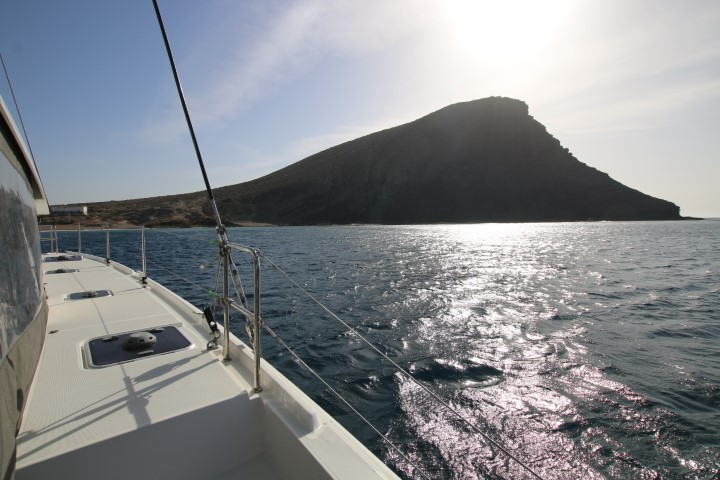 Vor Anker: Hinter (?) Montana Roja, leider kommt eine Welle „um die Ecke“.