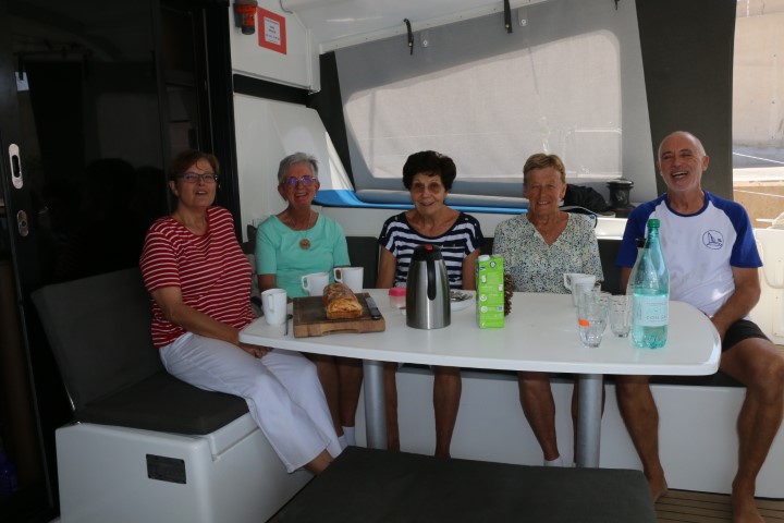 Und die YLs (Funkersprache: Young Ladies) kommen schon mehr als pünktlich. Wir sind gerade fertig. Keine Pause… Aber ein sehr netter Nachmittag. Viele Fragen, was das Leben auf dem Wasser angeht. Und dann natürlich auch viele Stories aus Dahl für Michèle. Nach fast 4 Stunden zieht es sie dann zum Abendessen zurück ins Hotel. Doch: Es ist unglaublich schwer, ein Taxi zu bekommen! Das Marina-Office hat natürlich längst zu. Und Frau Google gibt uns lokale Taxis, aber keine Telefonnummer. Und die mit Telefonnummer sagen ab: Zu weite Anfahrt. Doch als ich mit einer weiteren Telefonnummer wieder bei der selben Dame lande, erbarmt sie sich und gibt mir eine Nummer eines lokalen Unternehmens. Und der ist dann in Minuten da! Tschüss an Annet, Agnie und Bertha, war ein sehr netter Besuch!