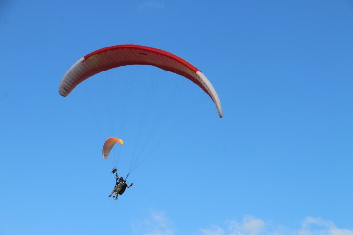 Treffpunkt an einem Supermarkt. Flott geht es aufwärts. Und: Ich kenne den Startplatz. Vor 15 bis 20 Jahren war ich schon mal hier. Die beiden Tandempiloten sind nett, schnell und zack – sind die beiden Mädel in der Luft. Ich komme so schnell gar nicht dazu, ihren Start zu filmen.