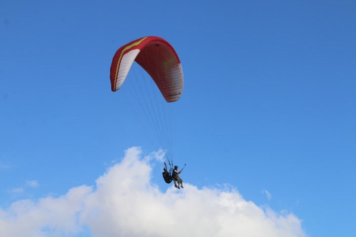 Gundi hatte einmal einen Tandemflug geschenkt bekommen. Und war so begeistert, dass sie das wiederholen wollte. Julia wird „zwangsverpflichtet“, auch einen zu buchen. Und die Beiden sind bereit, mich mitzunehmen, haben alles organisiert: Der Tandem-Veranstalter nimmt mich mit!