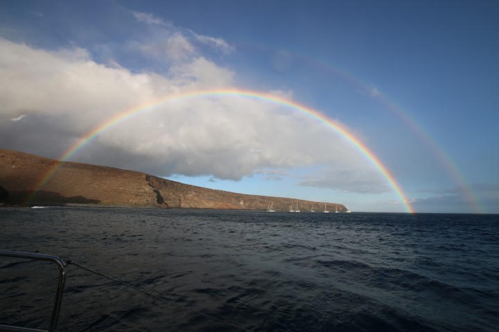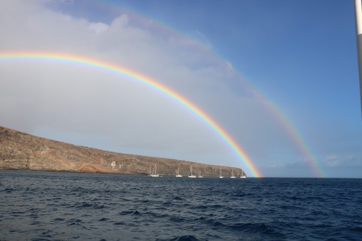 Die WALKER in Playa de la Gunacha, kleine Welle, großer Regenbogen.