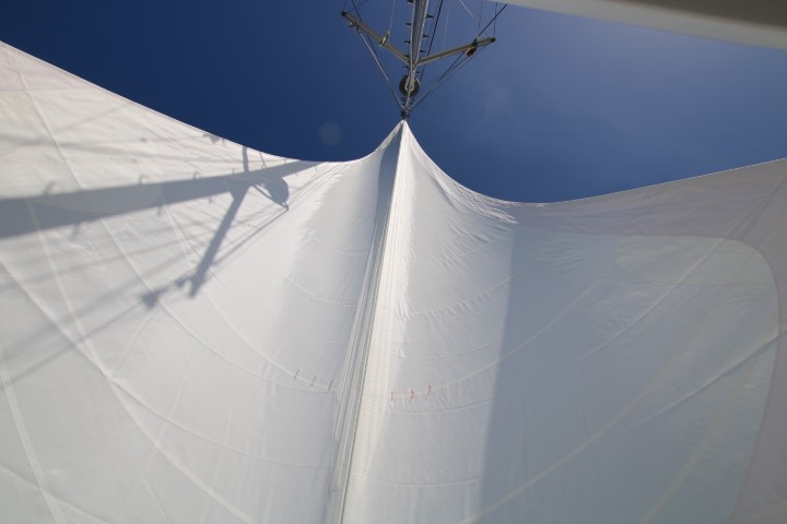 Ein netter Wind weht und so kann ich das neue Segel in der Passat-Stellung austesten. Läuft prima! Und ich denke auch daran, Fotos zu machen. Bei der Einfahrt in die Marina bekomme ich per UKW die Anweisung: Warte noch 5 Minuten im „yellow channel“! Die Stimme kommt mir bekannt vor: Johanna. Kann aber doch nicht sein, die ist doch letzten Sonntag nach D geflogen??? Doch beim nächsten Anruf ist klar: „RE – Chrischan, ich hab hier einen Liegeplatz ganz innen im Hafen.“ Doch Johanna! Und Thomas hat mit ihr klar gemacht, dass wir für ihn bequem zum Ausgang in die Stadt liegen.