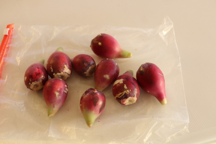 Zurück geht es dann noch mit einem kurzen Stopp im lokalen Supermarkt. Wenn wir schon unterwegs sind, dann gibt es noch ein paar frische Sachen dazu. Und der nächste Stopp dann bei einer Kaktee. Die hat Feigen mit nur ganz wenig Stacheln. (Gruß an Sven, der wohl hoffentlich das nächste Mal eher auf Michèle hört!) Trotzdem stecken am Ende eine ganze Menge dieser kleinen, feinen Stachel in den Händen! Aber wir ernten eine große Handvoll von den Feigen. Auf dem Hinweg hatte ich mir eine geholt: Superreif, sehr süß und mit einer Menge kleiner harter Kerne. Und der rote Saft färbt! Meine Finger waren auf dem Rückweg immer noch rot. Und gereinigt sind am Tagesende nur ein Fender richtig. Ein zweiter ist angefangen...