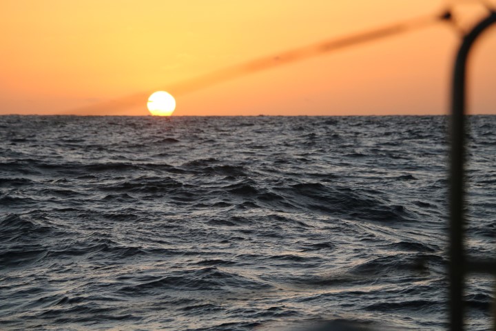 Meine Wache beginnt mit Wecken um viertel nach drei. Und Monduntergang bei Sonnenaufgang gehört zu den aufregenden Momenten.