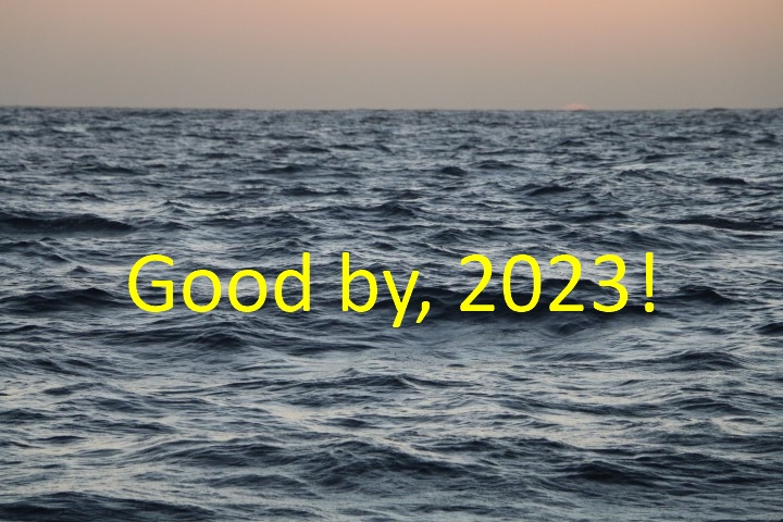 Kurz nach 20 Uhr bin ich in der Koje, doch der Alarm steht auf 23:45. So sitzen wir beide zur Jahreswende im Steuerstand – ohne Sekt, aber mit vielen Erinnerungen an 2023. Um uns herum Stille, leise knarrt und klackt das Boot. Manch eine Welle platscht leise. Und wir wünschen uns, ganz besonders aber Michèle Gesundheit für 2024.