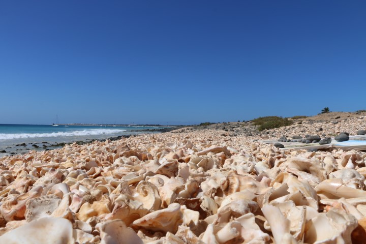 Kleine Wanderung: Anlanden an der Pontao, Müll wegbringen, Shell Cementry Beach, dann zur Südost-Spitze und die Ostküste hoch bis zum Abbiegen in die Salinen. Maps bekommt das man wieder nicht hin und ich schaffe es nicht, eine gpx-Datei in Maps zu importieren (Fehler! Kein weiterer Hinweis…).