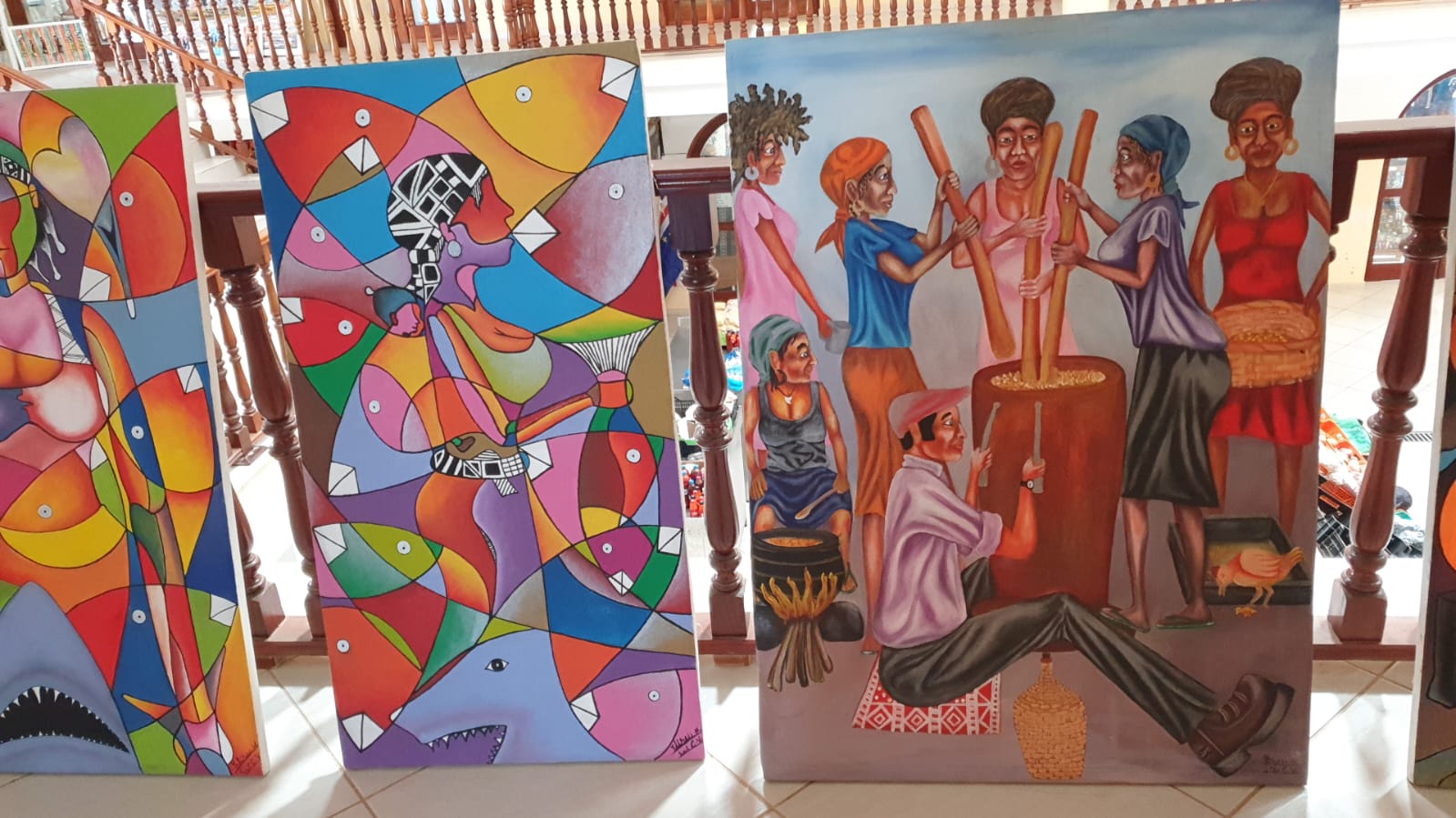 Beim Einkauf schlendere ich noch in einen chinesischen Markt – habe die Hoffnung, dass sie Fliegenklatschen haben. Unsere sind arg „zerschlissen“. Gibt’s aber nicht, dafür andere Sachen. Getrocknete Feigen zum Beispiel. Im Mercado Municipal entdecke ich, dass es sogar ein drittes Stockwerk gibt. Der Künstler im zweiten Stockwerk ist unzufrieden, dass ich seine Werke fotografiere. Ich solle kaufen! Meine Erklärung und wie ich ihm zeige, dass ich die Bilder per WhatsApp an Michèle schicke und nur die sagt, kaufen oder nicht-kaufen, besänftigen ihn. Und bis auf Paprika kann ich dann die Einkaufsliste abarbeiten.
