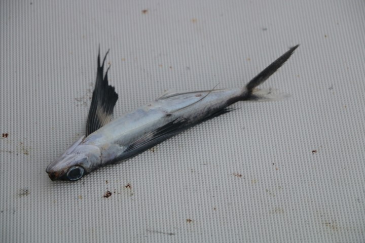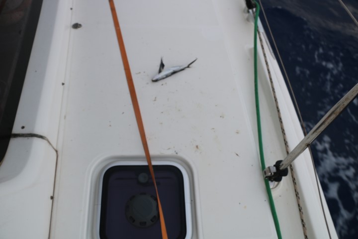 Der nächste Aufreger des Tages sind zwei tote fliegende Fische. Der eine hat eine ziemliche Sauerei an Oberdeck gemacht. Und als ich mit dem Schrubber das in Ordnung bringen will, bricht der Schrubber erst mal vom (Metall-)Stiel. Durchgerostet! Also ein paar Zentimeter abgesägt und den Schrubberkopf wieder dran. Vor ein paar Tagen musste ich beim Besen schon mal die gleiche Operation machen. Und dann entdecke ich beim Feudel die gleiche Geschichte. Also auch den… Holzstile haben eben auch so ihre Vorteile…