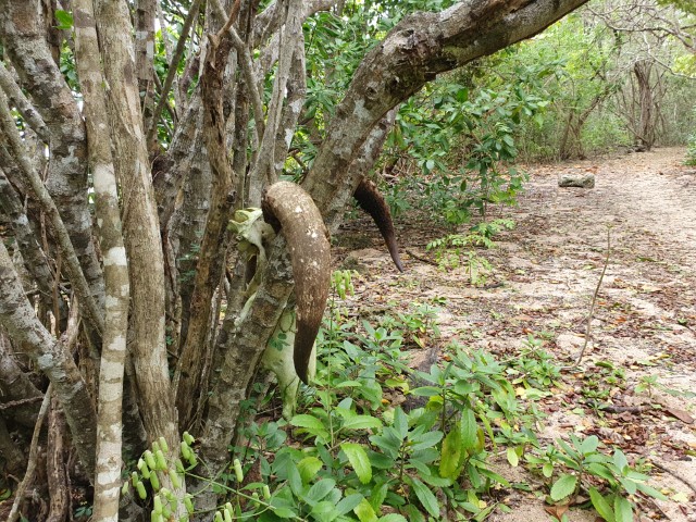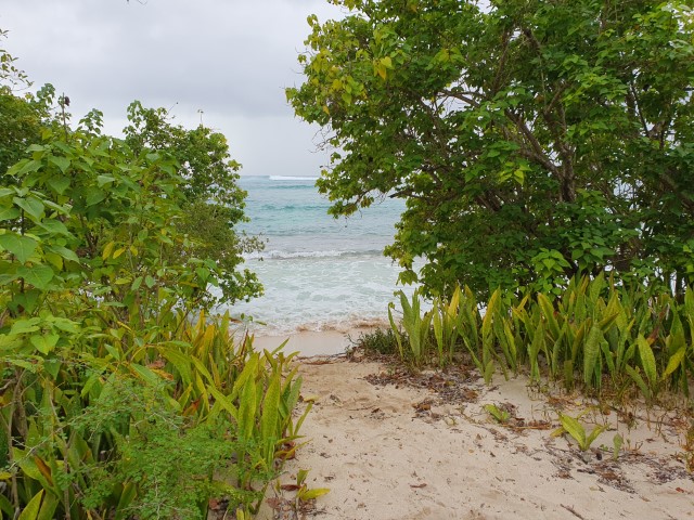 Und wieder ein paar Schritt weiter hört der gut ausgebaute Weg aus, und wir schlängeln uns auf einem schmalen Pfad weiter. Ein Schild verkündet dann ← Anse Bertand 4,2 Port Louis → 4,7 km. Ok – das spricht dann dafür, dass wir in Anse Bertand eine Rast machen. Gute 3 Kilometer später schaue ich in Maps nach: Oops, es sind noch weitere 6 Kilometer! Die Schilder sind also auch „karibisch“…. Wir beschließen, um zu drehen um sicher im Hellen zurück zu kommen.
