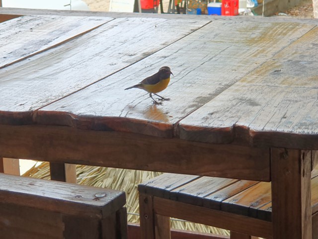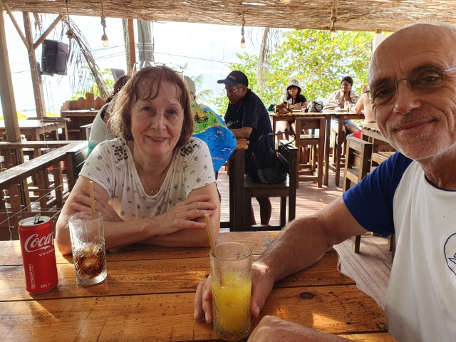 Eine Zeitlang begleitet uns schon ein Hund. Und brav dreht er mit uns um. Der hat uns adoptiert. Aber der bleibt an Land! Ich verkünde ihm, dass er, falls er auf die Idee kommt, uns ins Schlauchboot zu folgen, er sofort auf der anderen Seite das selbe wieder verlässt. Er trottet trotzdem mit. Michèle versucht dann auf französisch, ihm klar zu machen, dass es mit uns nichts wird. Versteht er aber auch nicht! Klar: Der spricht nur Creol! Nur auf der Schule lernt man hier französisch…..