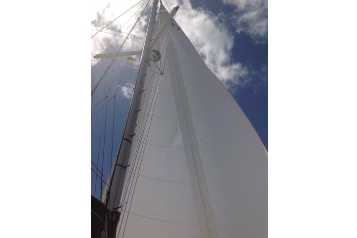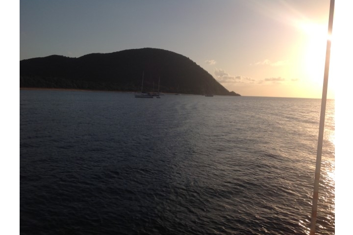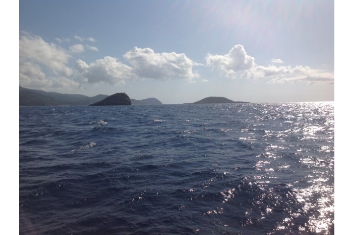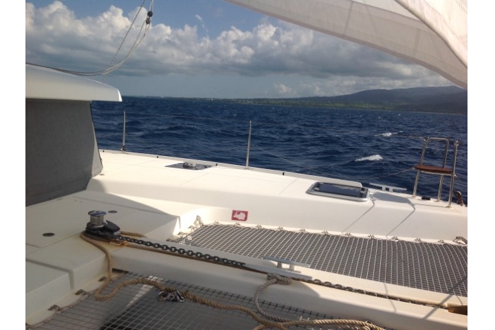 Der Tag beginnt mit dem Versuch, auszuklarieren. In Port Louis gibt es eine offizielle Zoll-Stelle. Telefonnummer habe ich, also darf Michèle da anrufen. Anrufbeantworter. Und keine Antwort. Also Plan B: Wir verlegen nach Deshaies. Hat zwei Vorteile: Erstens können wir da sicher ausklarieren und zweitens bekommt Monika zum Eingewöhnen eine kurze Fahrt. So 4 bis 6 Stunden rechne ich. Damit wir sicher im Hellen ankommen, machen wir dann gegen 11:30 Uhr Blitzstart. (Ich hatte vorher 6 Meilen weniger geschätzt und erst in der Detail-Planung ….) Ankerauf ist heute etwas schwieriger, haben wir doch die beiden Reiter (25 kg Blei) auf der Kette. Sorry Ansgar – wenn Du das liest, ich wollte Dir ja Fotos schicken, habe das aber in der Eile vergessen. Dann mit Rückenwind los. Herrlich, da können wir die Doppelfock nutzen, das gibt einen Knoten mehr und wir brauchen den Para nicht zu setzen.