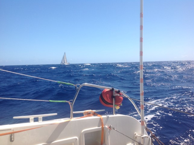 Frischer Wind treibt uns schneller als geplant voran und an Montserrat entlang kann ich dann dann sogar die Doppelfock aufblättern. So sind wir dann bald nach 14 Uhr da. Mit der Port-Authority mache ich ab, dass wir morgen einklarieren. Und dann kehrt Ruhe ins Schiffchen ein. Schwimmen, Ausruhen, ein wenig Spielen. Schon ist wieder ein Tag vorbei!