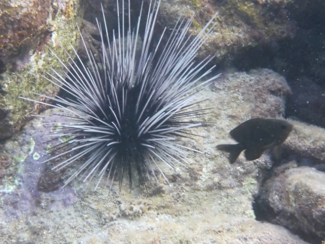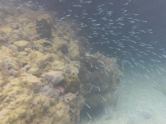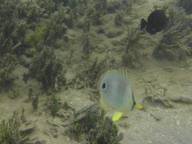 Am späten Morgen dreht Monika ihre Runden - ums Schiff. Und nachmittags machen Michèle und ich uns mit dem Dinghy auf zu einem „Snorkeling Spot“. Wunderbar geschützt. Wir können uns nur nicht einigen, ob das Wasser da wärmer ist. Ich meine: Ja! Das wäre genau die richtige Umgebung für Monika, das mit dem Schnorcheln mal zu probieren. Doch sie wollte lieber an Bord bleiben…. Gut: Kristallklar ist anders, aber insgesamt sehr nett. Damit Monika sieht, was sie verpasst hat, mache ich Fotos en masse. Und ein paar Filmschnipsel. Ist dann hinterher wieder schwierig, das auszusortieren.