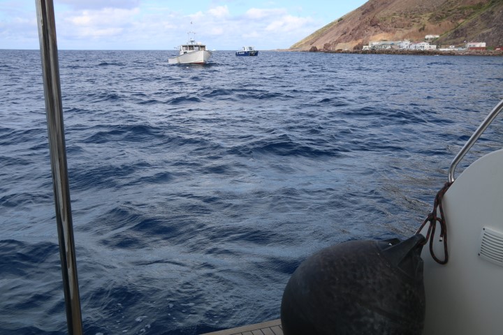 Der Tag beginnt um 03:30 Uhr. Ein scharfes Geräusch mit einer ungewohnten Bewegung lässt mich aufwachen. Wie ein Blitz bin ich auf dem Vorschiff: Nein – die beiden Mooring – Leinen sind in Ordnung. Ich schaue mich um. Wir liegen jetzt zwar quer zur Welle, aber doch sicher!! ???